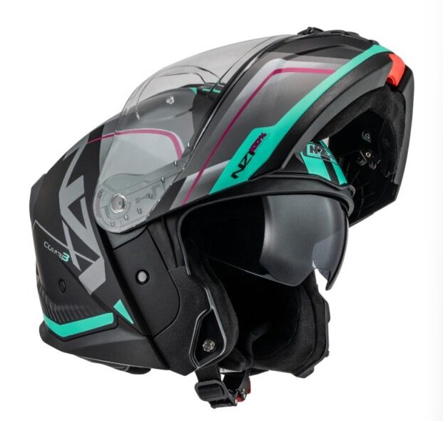 Inside, soft fabrics favor the comfort. The unprecedented function of its original movement mechanism of visor up to let fresh air circulate continuously without disturbing your eyes is a great advantage for hot weather and to prevent the formation of fog. A specic channel for those who wear corrective glasses increases your well being. The lower chin and neck curtains perfectly closes the entrance to the wind avoiding the noise. And the nasal deflector prevents the breath from going towards the visor, helping to avoid fogging. It has a completely removable and washable interior. The ventilation system keeps your head tempered and favors your riding concentration. Two shells sizes guarantee a perfect t and excellent comfort for all sizes. Light weight, great comfort.