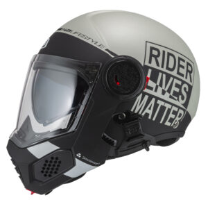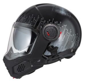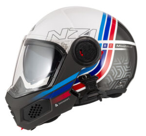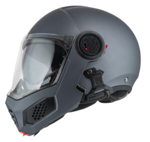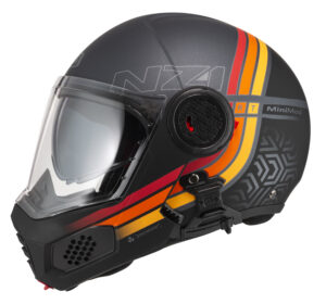 Very compact folding helmet that complies with ECE/UN R.22.06, P/J regulation. To ride safe in all light conditions Requires a helmet with sun visor. Now more comfortable with a new specific channel for spectacle wearers to increase their well-being, visor with MIST RETARDAND that helps prevent fogging. City or highway are the natural territory of this light and silent helmet. Prepared for video camera.